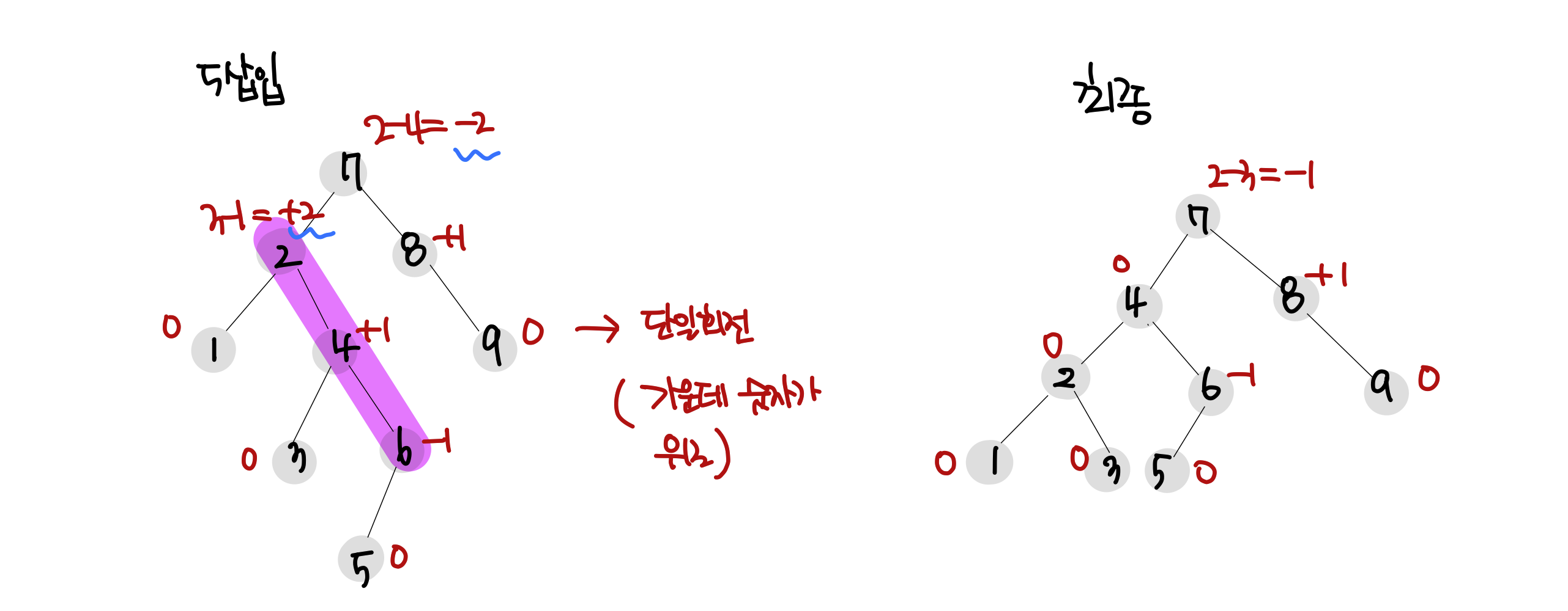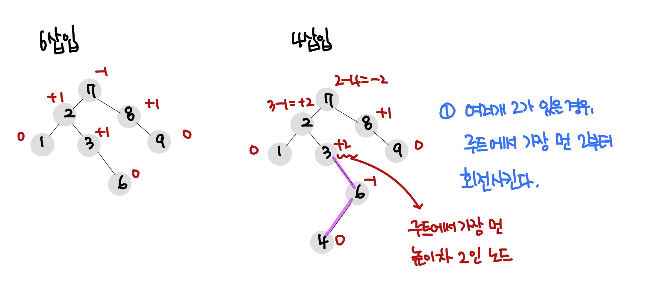 * 여러 개의 높이 차 2인 노드가 존재 시엔. 루트부터 가장 먼 2부터 시작한다.