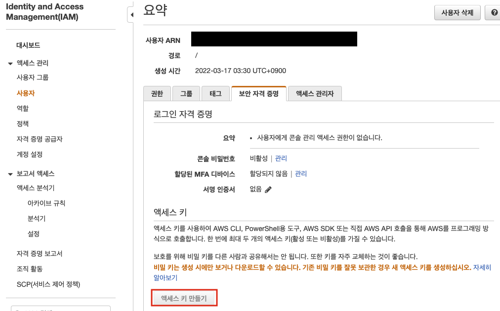 / 나 % 가 없는 SecretKey가 생성될 때 까지 액세스키를 만든 후, yml에 있는 키를 변경해준다.