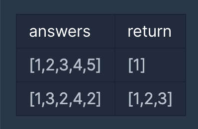 - 가장 많이 맞춘 학생을 리턴하면 되므로, 가장 많이 맞춘 개수와 비교하여 같으면 answer에 넣어준다.