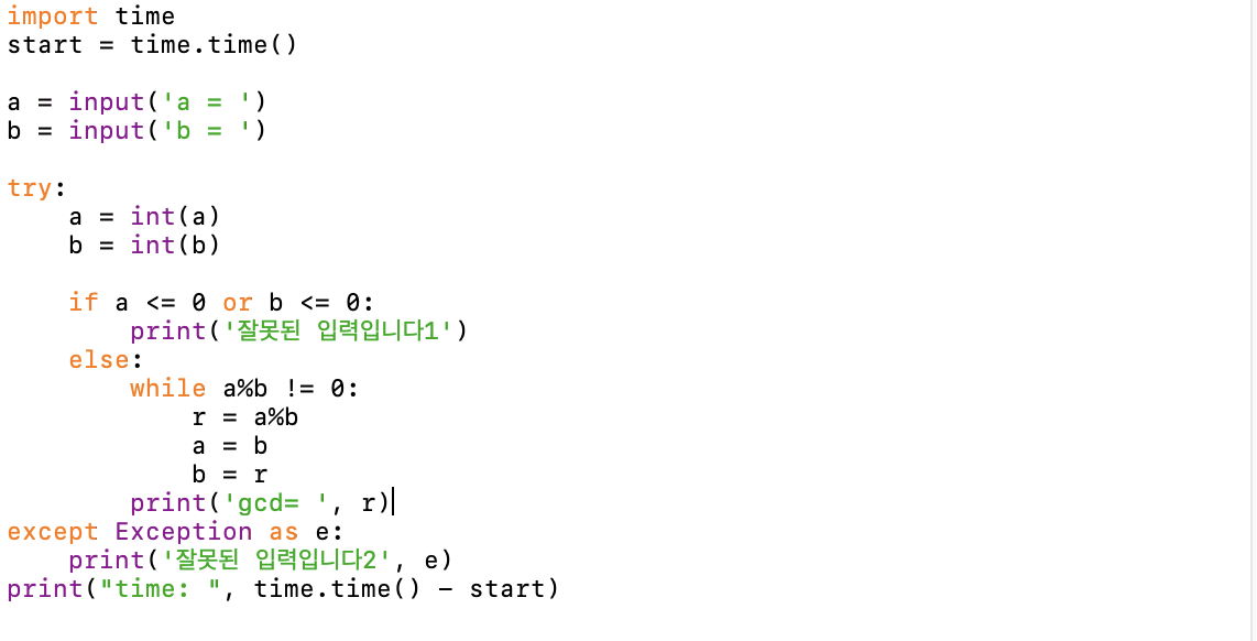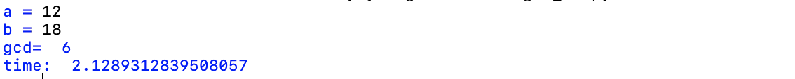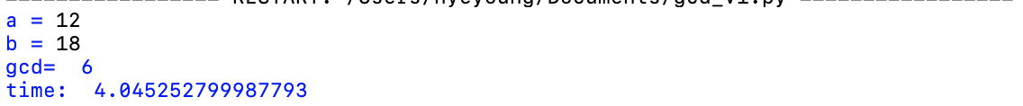 유클리드 호제법: 결과 값과 시간 2초 가량 차이가 난다.