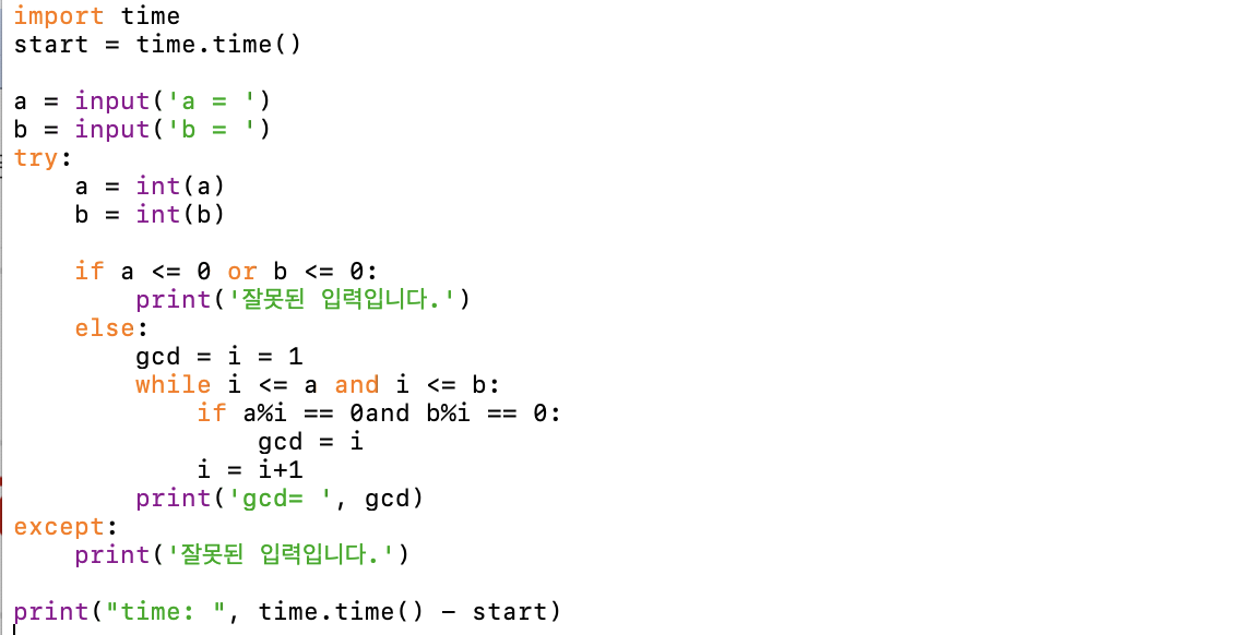 유클리드 호제법이 아닌 다른 방법으로 코드를 작성한 후, 시간을 비교해보았습니다.