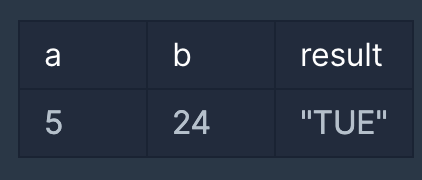 - a-1달까지의 말일을 더한 후, b-1을 더하고 %7번째의 요일을 리턴한다.